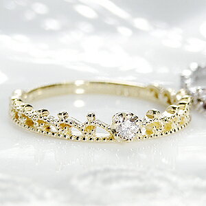 K18WG/PG/YG ティアラ ダイヤモンド リング【送料無料】【代引手数料無料】【品質保証書】【刻印無料】ゴールド クラウン 一粒ダイヤリング 指輪 18金 アンティーク 王冠 ダイヤモンド レディース 可愛い 素敵 おしゃれ 人気 王女